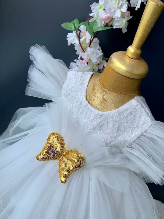Beyaz Tütü Uzun Kuyruklu, Gold Renk Melek Kanatı Detaylı Elbise Takımı