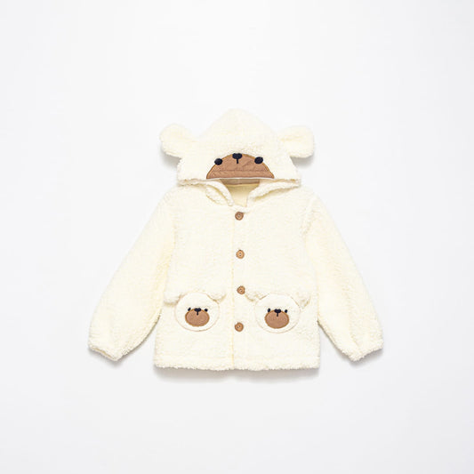 Kuzu Kumaş Ayıcık Kulak Kapüşonlu Çocuk Montu