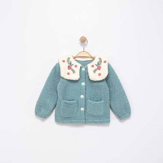 Kuzu Kumaş Çiçek Desenli Bebe Yaka Çocuk Montu
