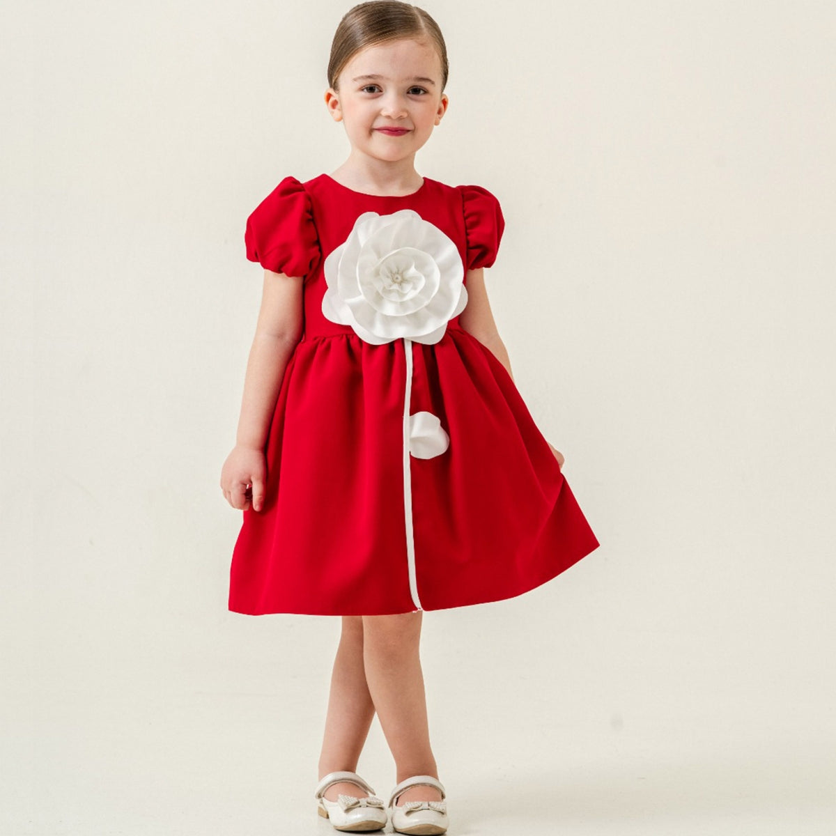 Kırmızı Balon Kol Çiçekli Kız Elbisesi