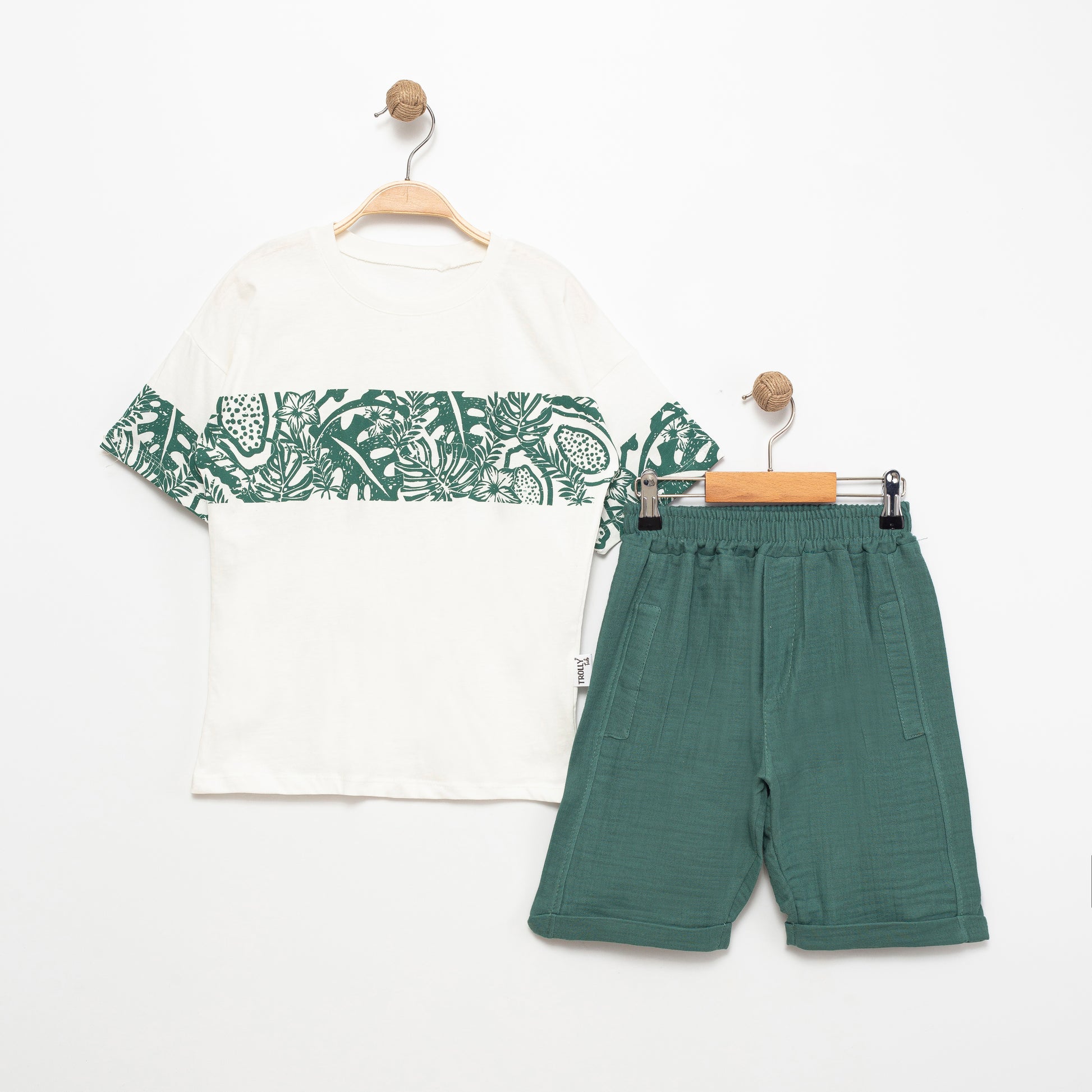 Kısa Kol ve Baskılı T-shirt, Yeşil Şort Erkek Çocuk 2'li takım