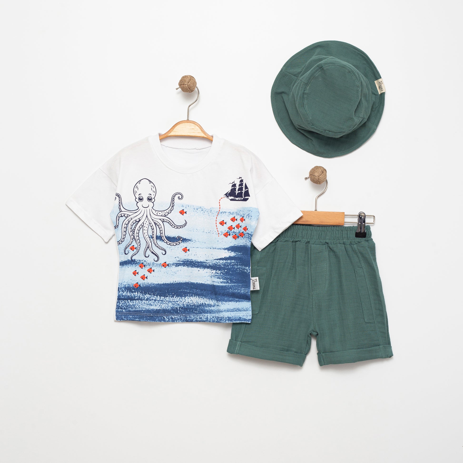 Kısa Kol ve Baskılı, Yeşil Erkek Çocuk 3'lü takımı