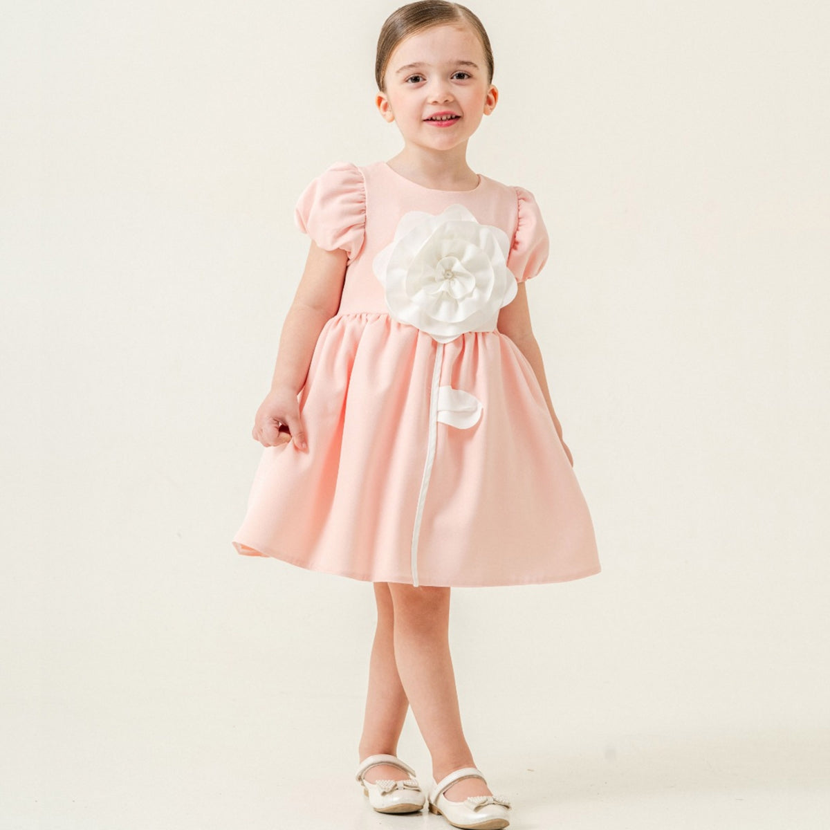 Pembe Balon Kol Çiçekli Kız Elbisesi